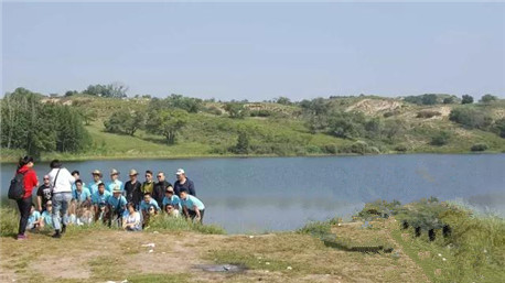 沿途仰視碧藍的天空,白云悠悠;草地上,羊群漫漫,鮮花盛開。極目遠眺,草原起伏,宛如海浪,天地相接處一群鴻雁飛來,我們的大巴車上也是各種歡歌笑語,與大自然融合成一片和諧的景象,也是很應景的突出了我們這次的活動主題,劉董一直強調(diào)的融合。